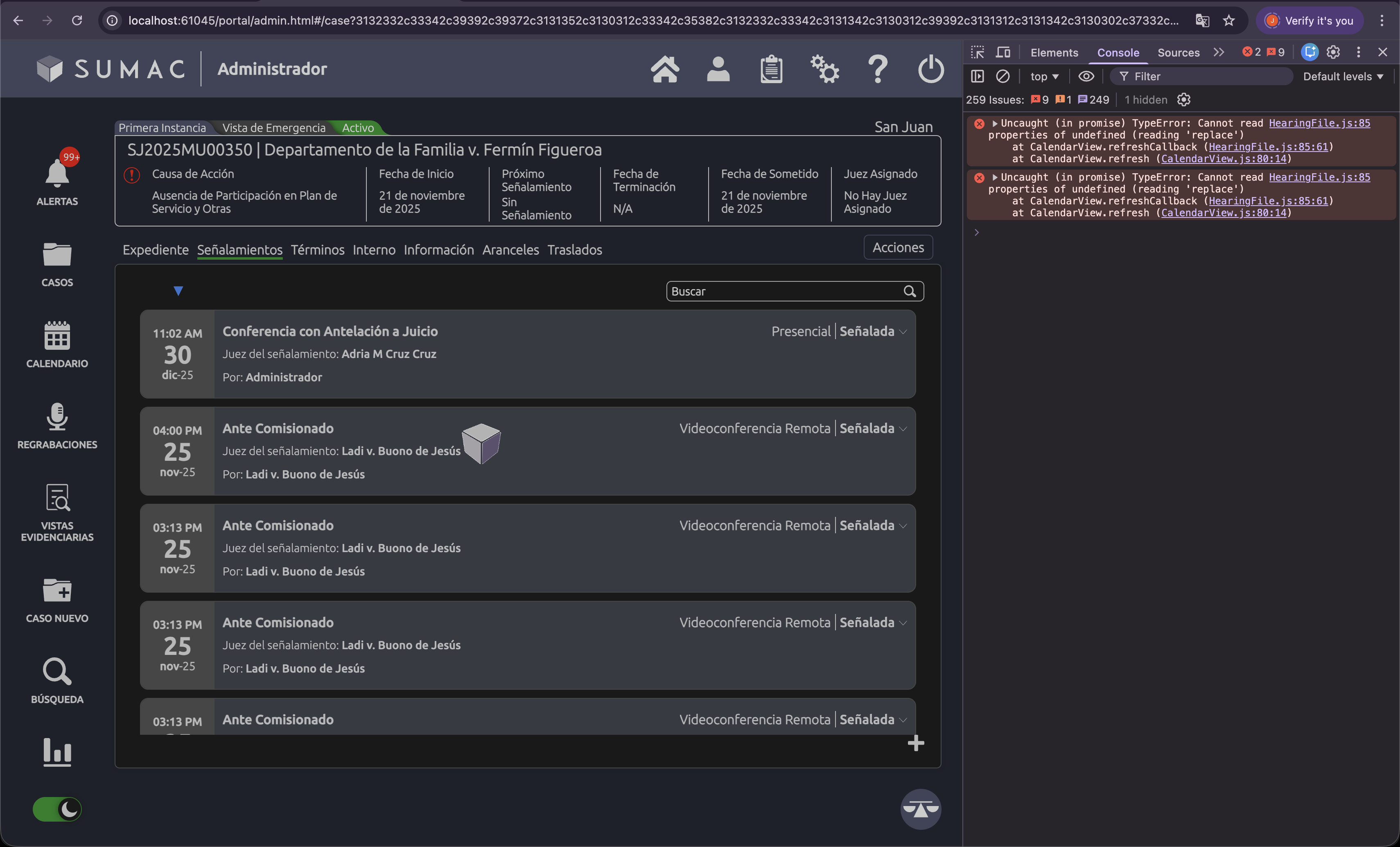 openCreando señalamiento desde CaseView