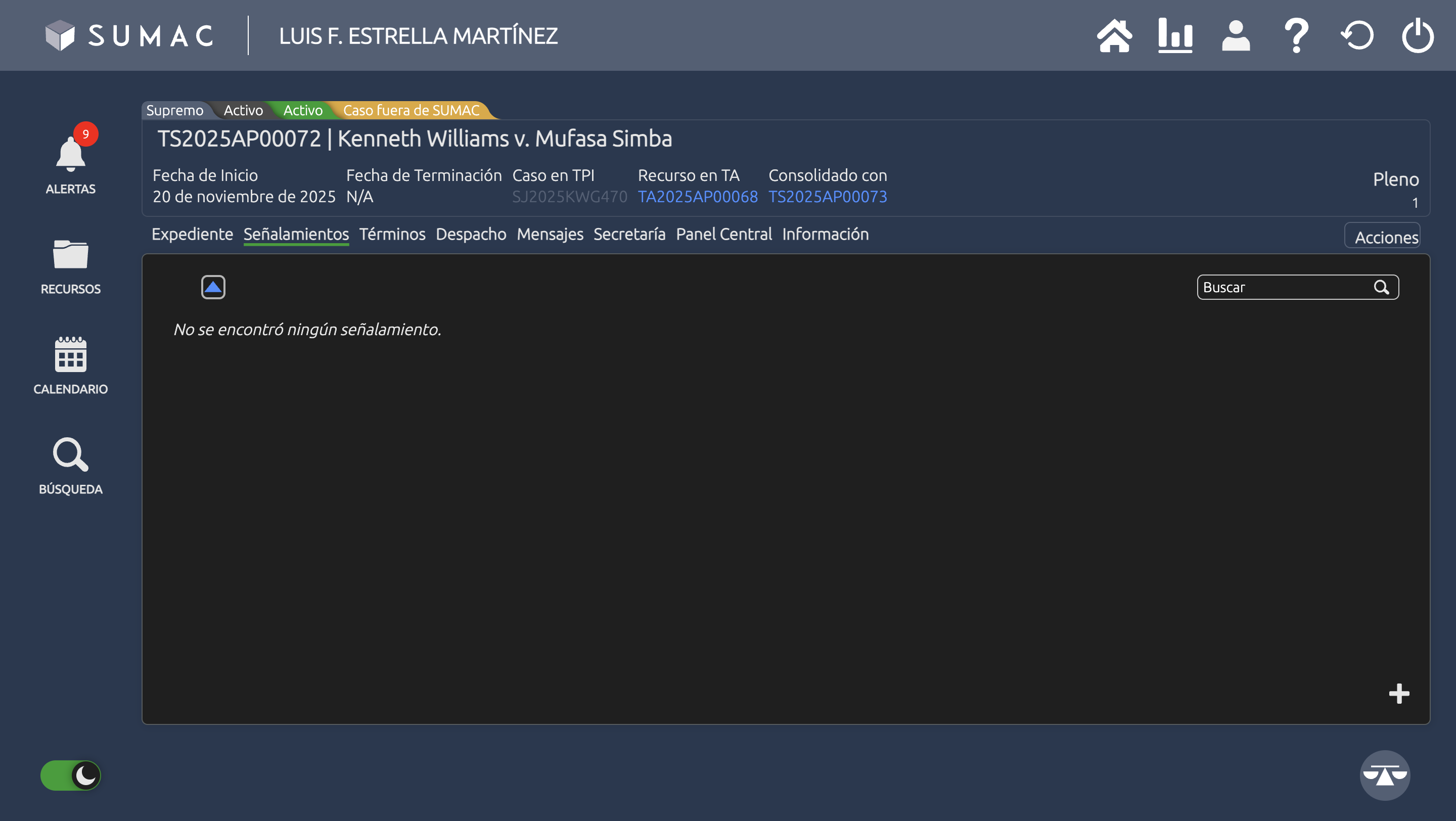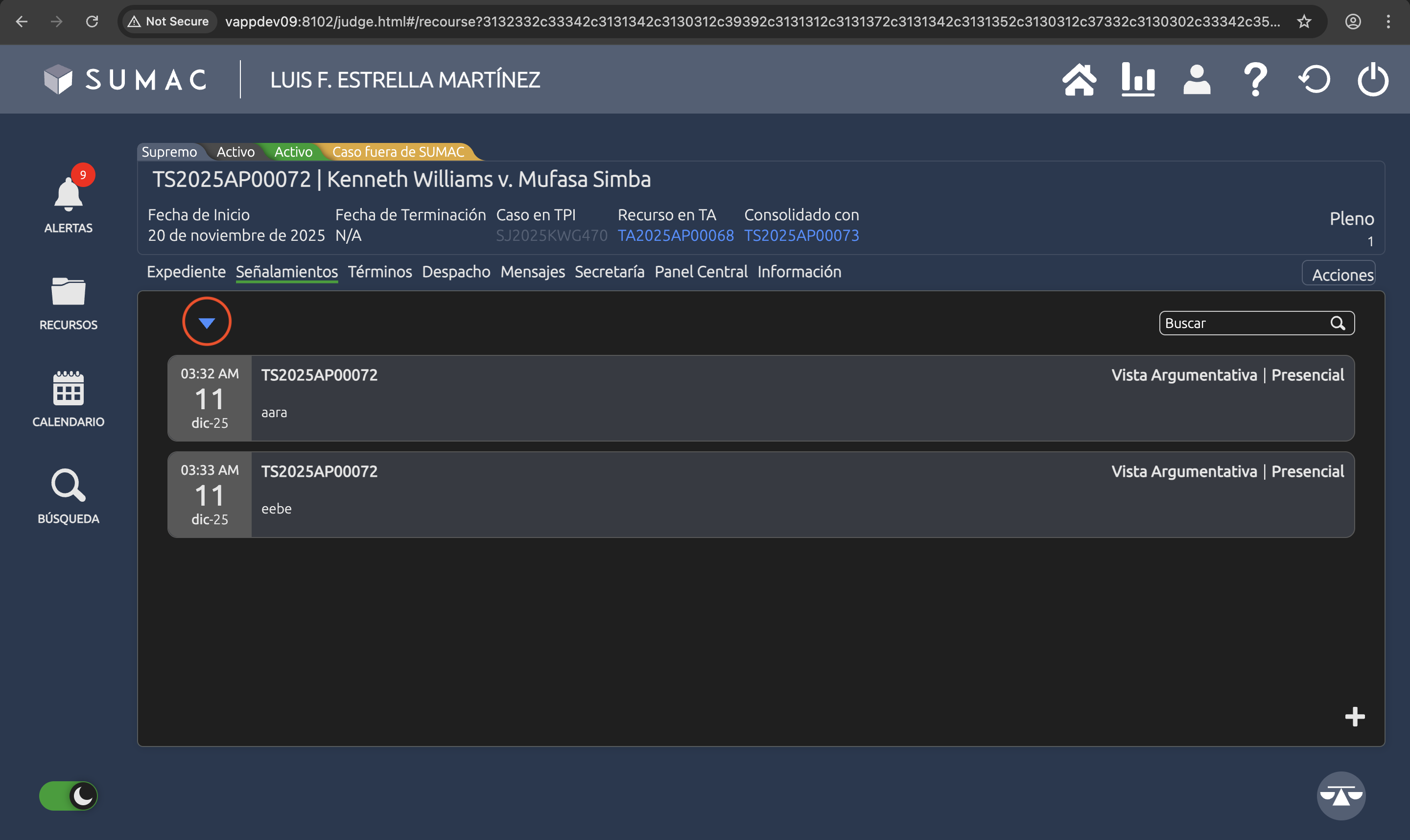 Hacer click en el sort arrow del tab de Señalamientos de un recurso remueve todos los tiles.