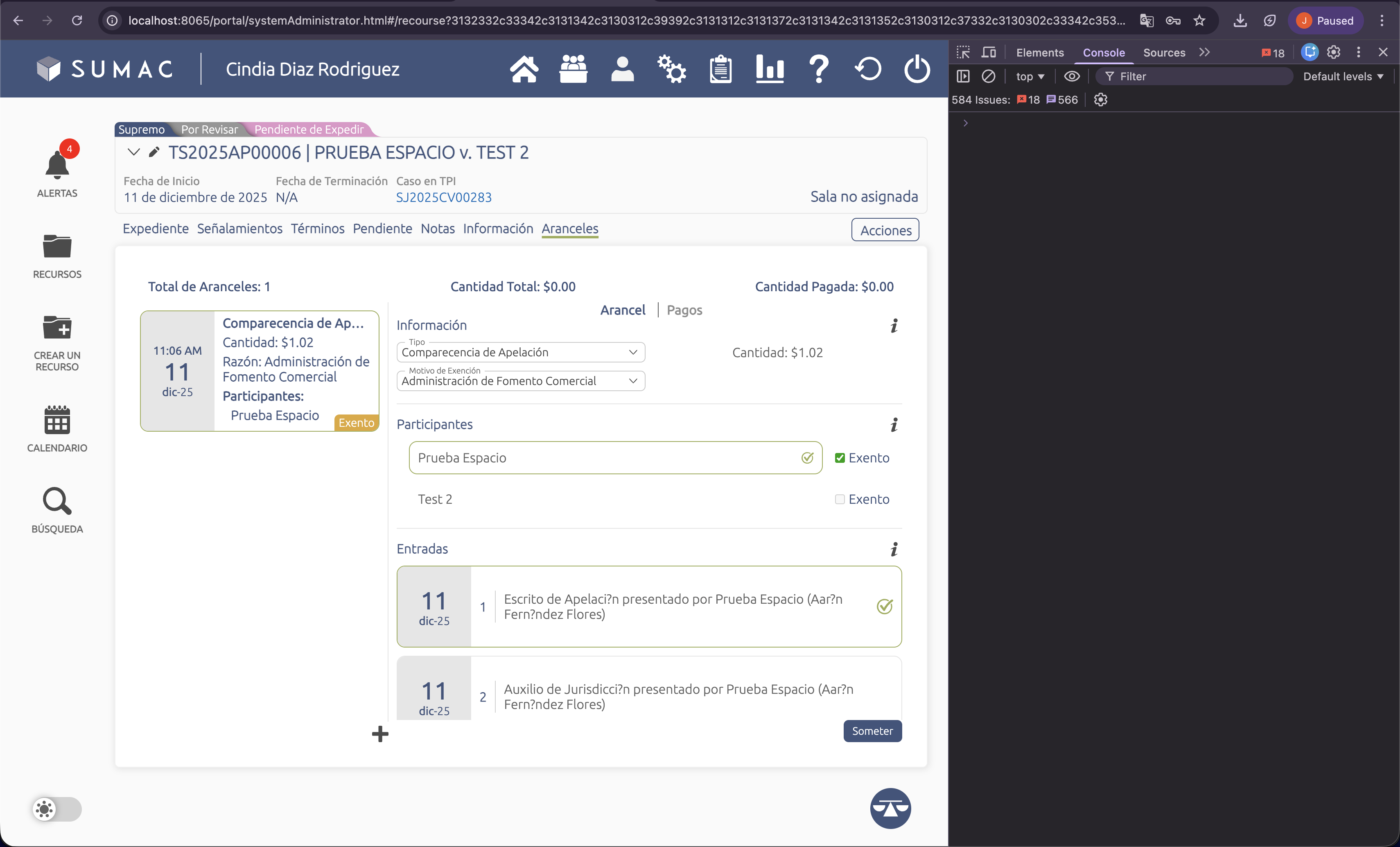 La pestaña de aranceles debe ser como la de TPI-Admin.