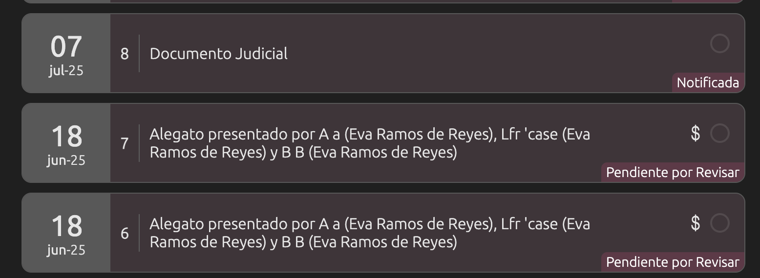 - Están llegando las mociones pendientes por revisar (incorrecto)
