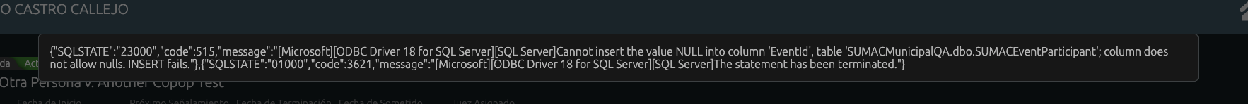 openError añadiendo participante a señalamiento