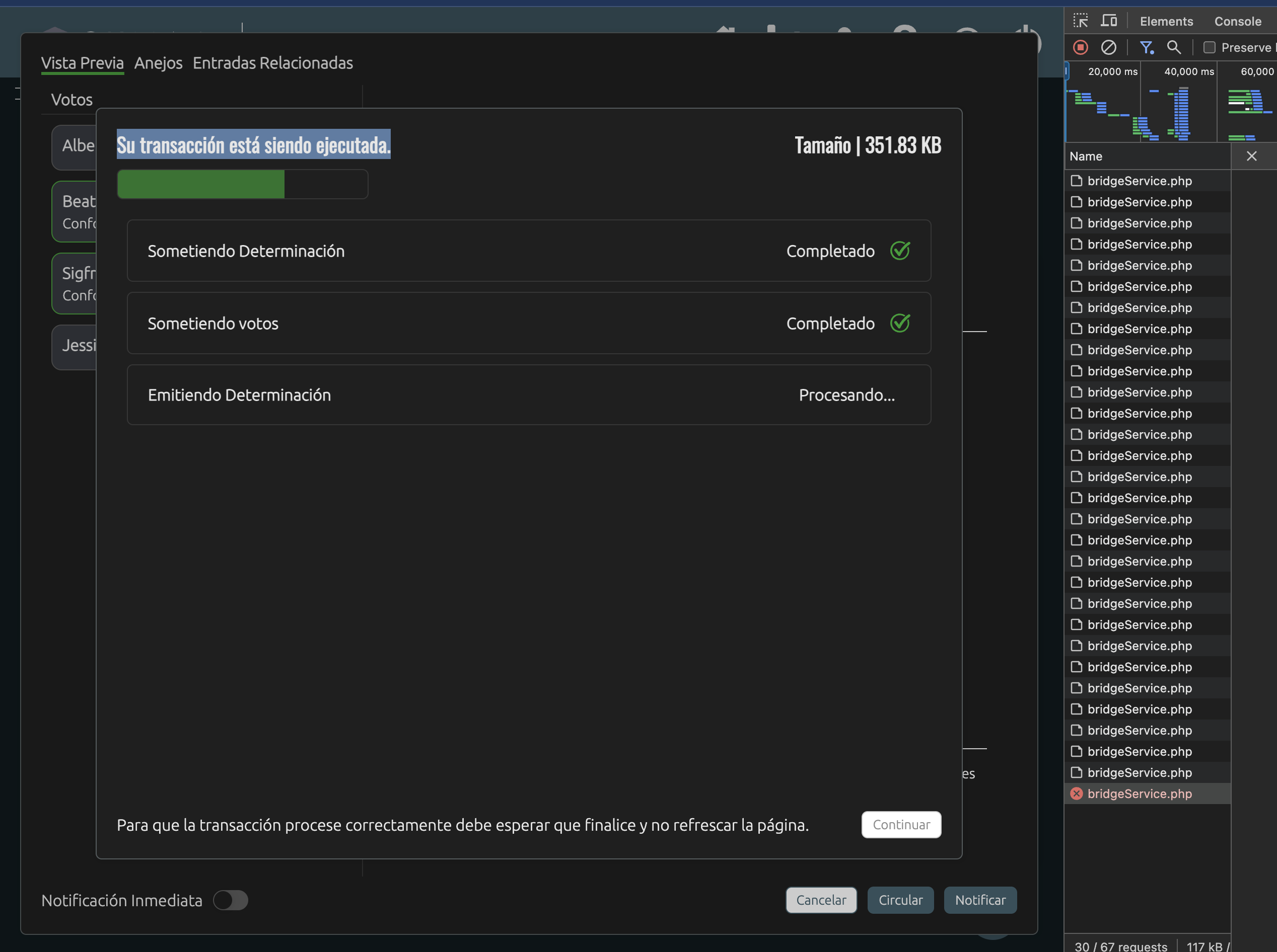 Si emitir se va en timeout, se tranca la plataforma y no hay manera de salir.