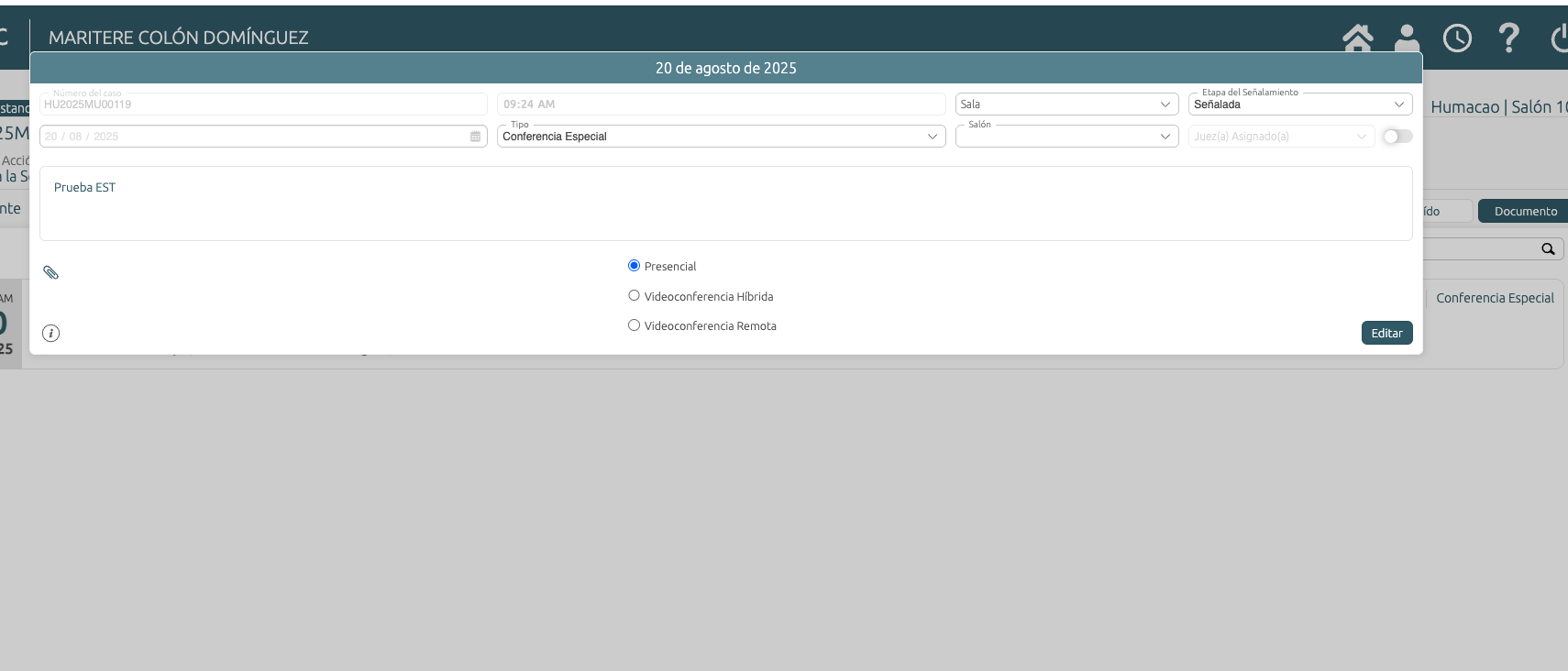 - Subject changed from Información de Señalamiento creado al hacer remisión no se guarda. to Task 19758: Habilitar el calendario para poder editar señalamientos