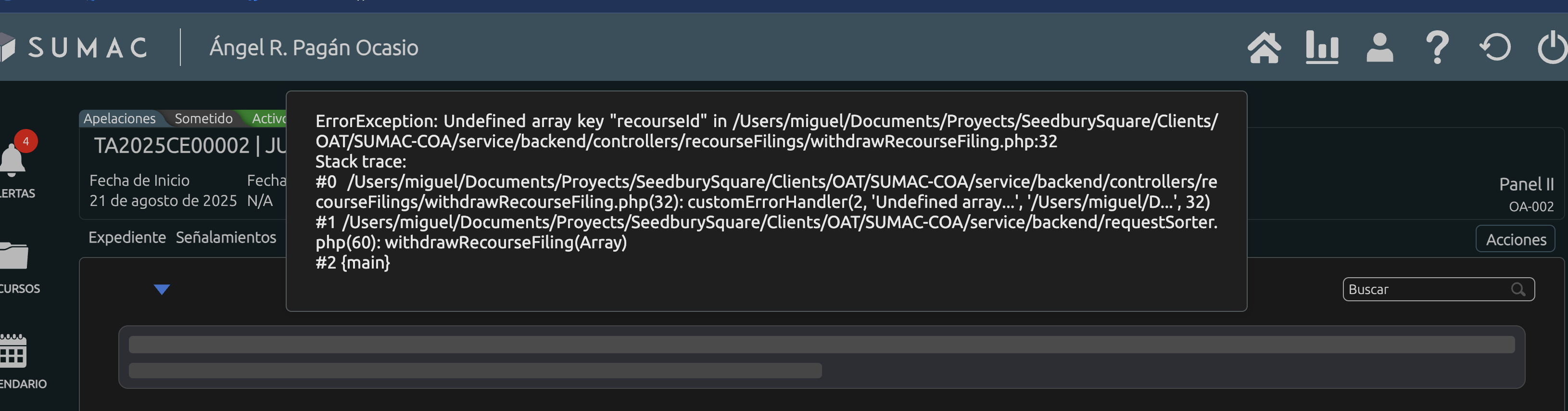 En el expediente de un caso -> Secretaría -> Notificaciones Pendientes al presionar el boton de retirar en el tile de la determinación explota