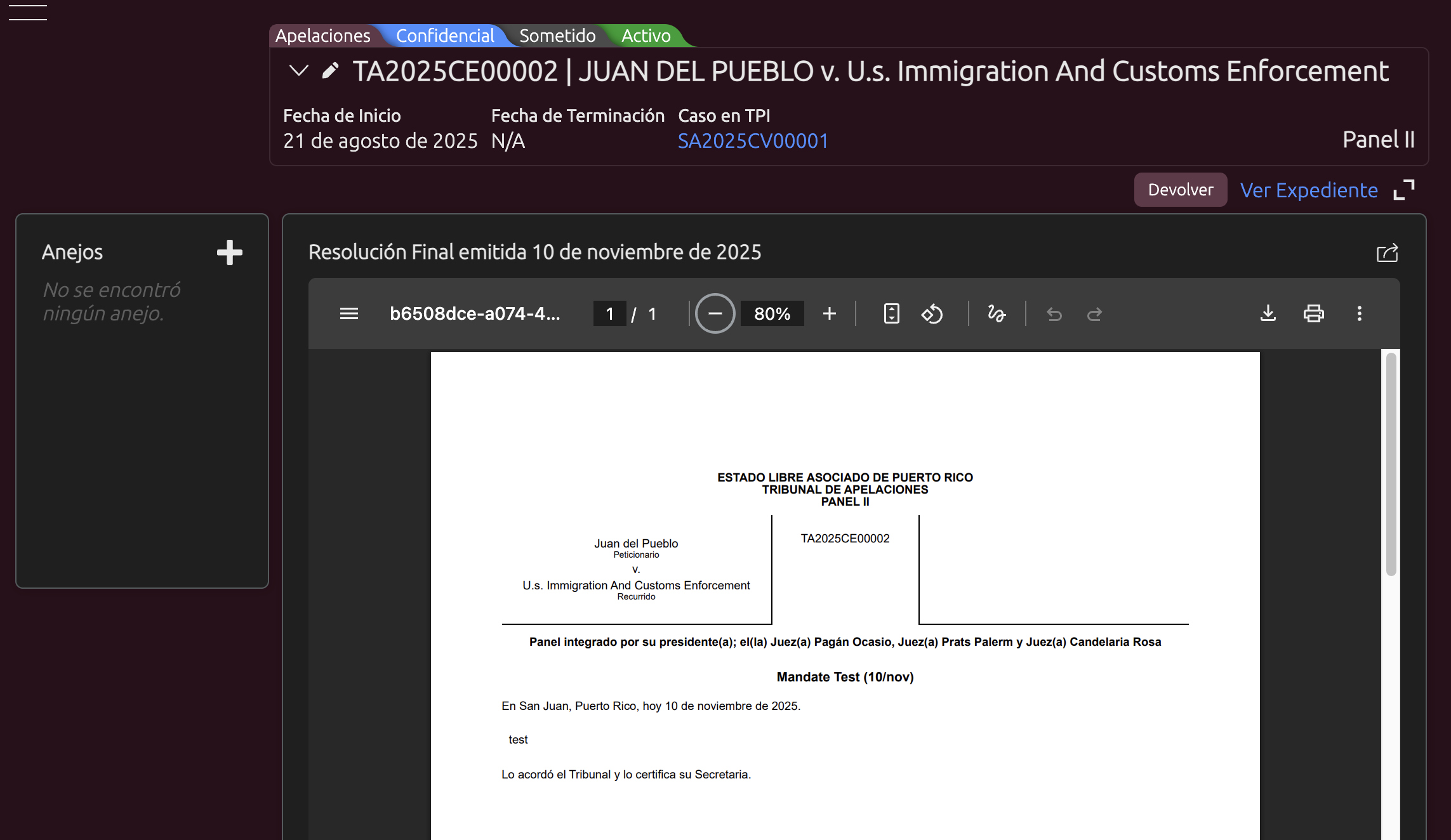 Al 'Notificar' una resolución final (emitir con todos los votos) en jueces el recuadro derecho del header aparece vacío.