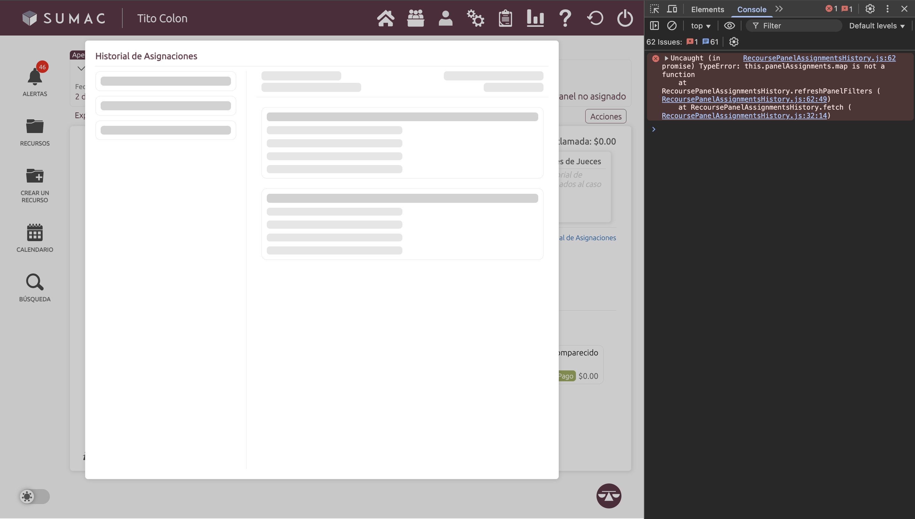 Sale error si no hay un panel asignado o no hubo algún historial al presionar el botón de "Historial de Asignaciones"