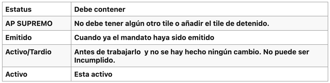 No pasó: El tile de AP Supremo sale con el tardío. AP Supremo debe estar solo, ver tabla de los estatus en los comments. Los otros estatus están correctos solo el del AP Supremo no pasó
