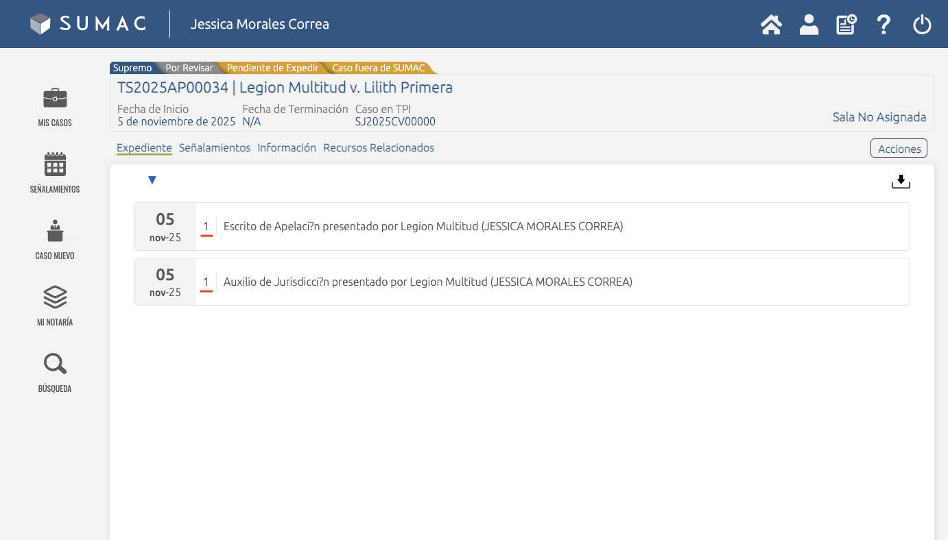 Se digitalizó un caso y recurso de TS con recurso y auxilio de jurisdicción; resultó en dos docket entries con "1". Incluyo imagen.