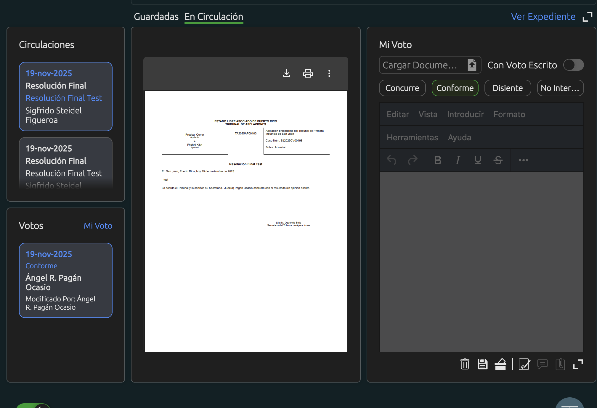 {"route":"CAST_VOTE","votesArray":[{"voteTypes":[{"code":63,"description":"Conforme"}],"judgeId":88,"withOpinion":false,"recourseId":23115,"title":"Voto Conforme del (de la) Juez(a) Ángel R. Pagán Ocasio","date":"11/19/25 13:49:24","content":"","mainDocument":{"base64EncodedFile":false}}],"recourseFilingId":26911,"recourseId":23115,"officers":[{"personId":12709,"CFI_PersonId":163323,"FullName":"WANDA RIVERA LÓPEZ","FirstName":"WANDA","MiddleName":null,"LastName":"RIVERA","SecondLastName":"LÓPEZ","Email":"alejandro.dejesus@seedburysquare.com","AssistantUserId":"E2BB53EC-F541-4366-8DD6-10BCC1EBAF61","Roles":["89B68CCA-4718-4EE1-8EFC-1A67AD5DABA5","06B4A7A4-FE43-4C38-A930-6E2D58B7BA2B","6870EB02-18AF-4C1F-BE8D-F0E78D91ED2B"]}],"secretaries":[{"personId":12709,"CFI_PersonId":163323,"FullName":"WANDA RIVERA LÓPEZ","FirstName":"WANDA","MiddleName":null,"LastName":"RIVERA","SecondLastName":"LÓPEZ","Email":"alejandro.dejesus@seedburysquare.com","AssistantUserId":"E2BB53EC-F541-4366-8DD6-10BCC1EBAF61","Roles":["89B68CCA-4718-4EE1-8EFC-1A67AD5DABA5","06B4A7A4-FE43-4C38-A930-6E2D58B7BA2B","6870EB02-18AF-4C1F-BE8D-F0E78D91ED2B"]}]}