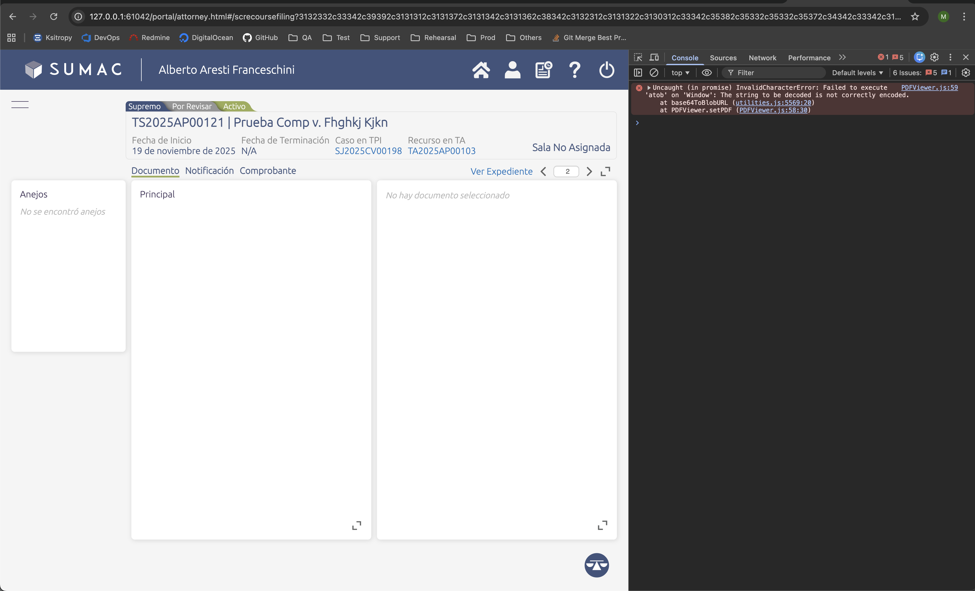 En el recurso TS2025AP00121, cuando entro a la entrada 2 del expediente explota algo del pdf y se queda vacĂo el PDFViewer.